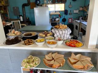 Plates, bowls, cutlery, pots, pans and all food preparation tools